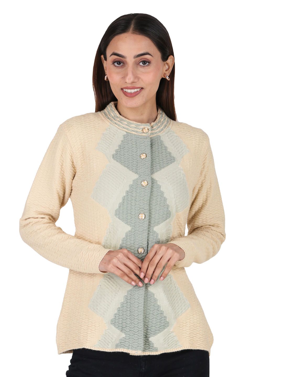 | Style Note | Softfeel Light Weight Knitted Stylish Vislon Jacquard Designer Cardigan F/S |